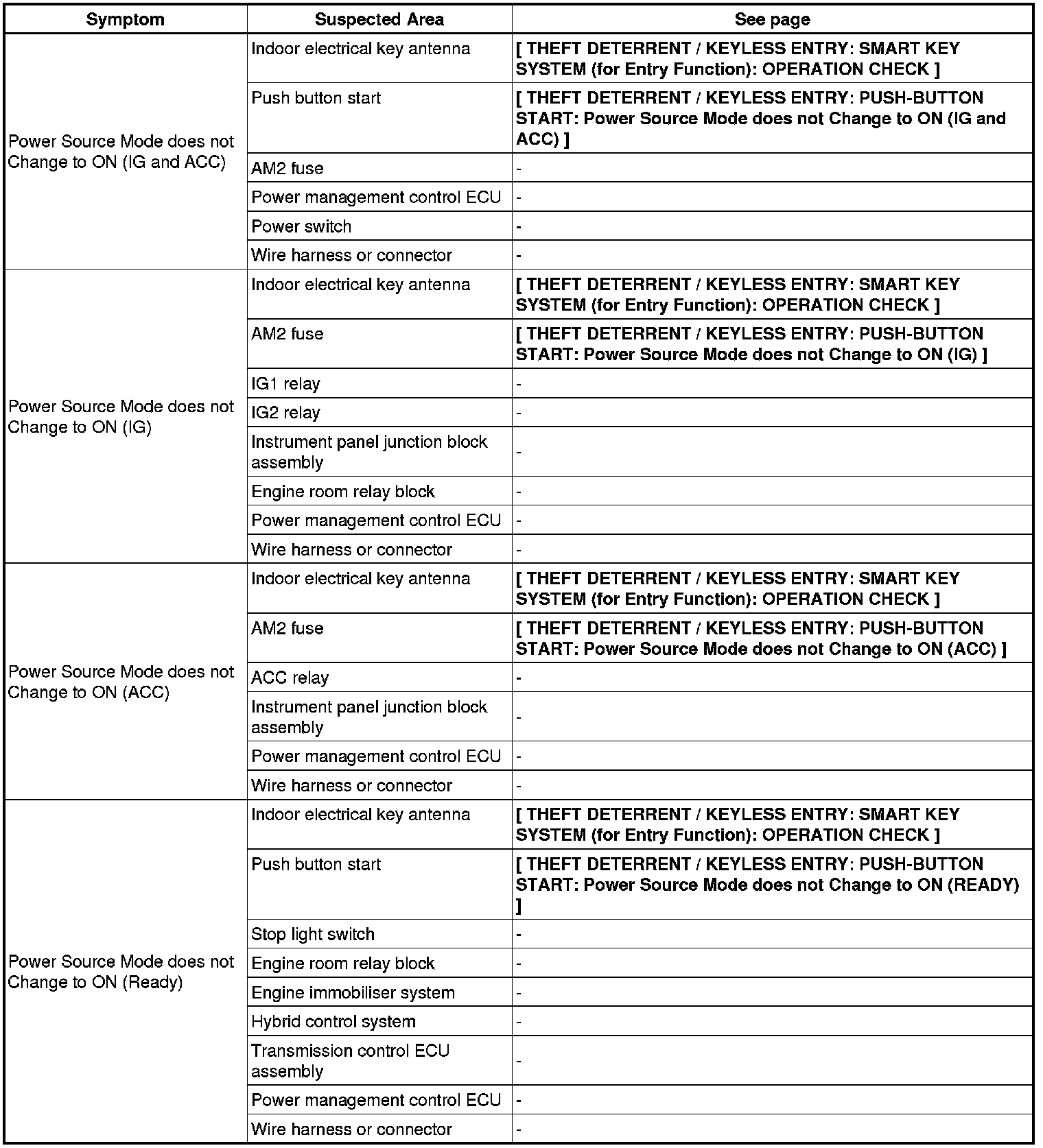 THEFT DETERRENT / KEYLESS ENTRY: PUSH-BUTTON START: PROBLEM SYMPTOMS TABLE