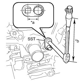 * The "with SST" torque value is effective when using SST with a fulcrum length of 25 mm (0.984 in.) and a torque wrench with a fulcrum length of 180 mm (7.09 in.) Service Precautions.