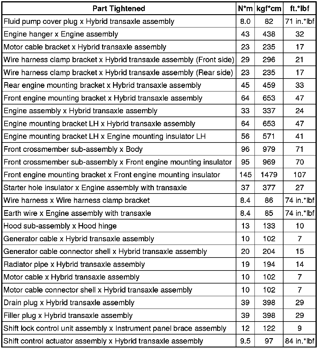 SPECIFICATIONS: P410 HYBRID TRANSMISSION / TRANSAXLE: TORQUE SPECIFICATIONS
