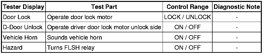 DOOR LOCK: WIRELESS DOOR LOCK CONTROL SYSTEM (w/o Smart Key System): DATA LIST / ACTIVE TEST