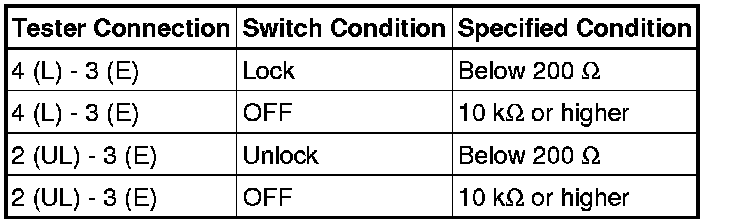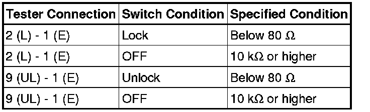 * If the result is not as specified, replace the power window regulator master switch assembly.