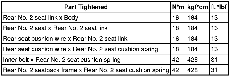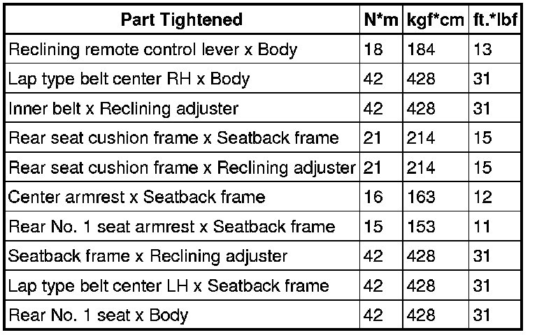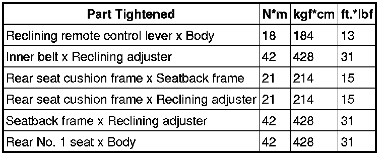 SERVICE SPECIFICATIONS: SEAT: TORQUE SPECIFICATIONS