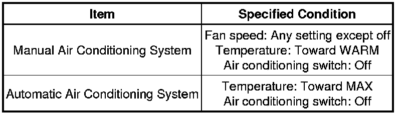 (1) Set the air conditioning as follows while warming up the engine.