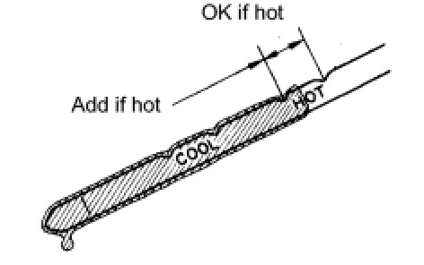 (e) Take it out and check that the fluid level is at the HOT position.