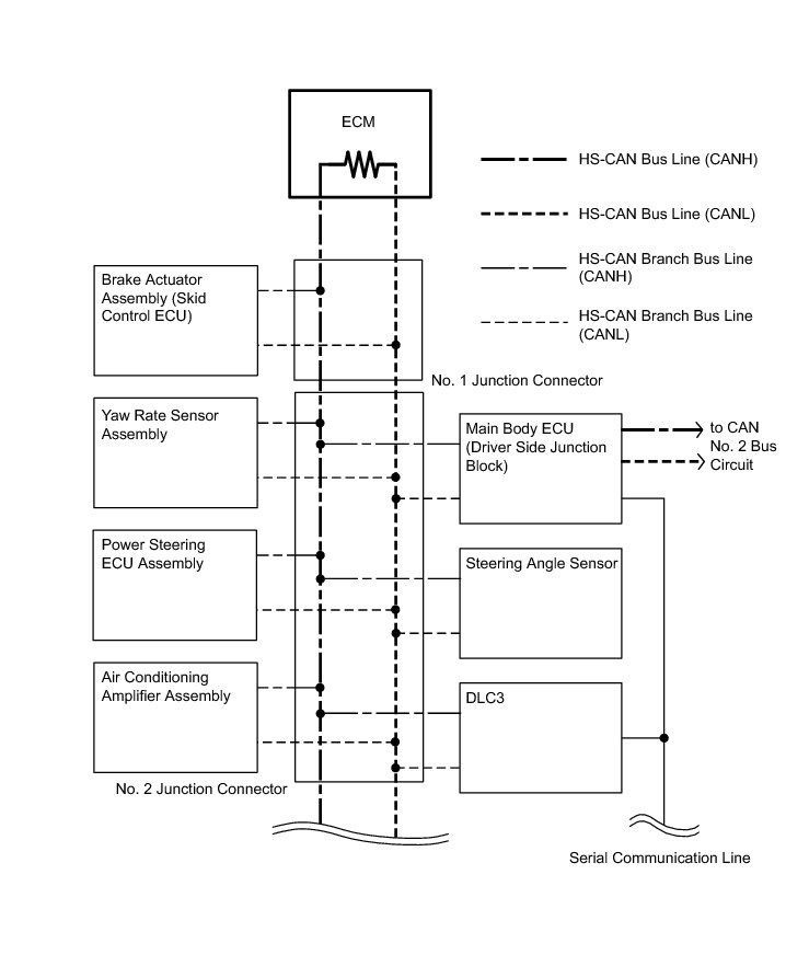 * The brake actuator assembly (skid control ECU) detects and stores steering angle sensor and yaw rate sensor assembly DTCs and performs DTC communication by receiving information from the steering angle sensor and yaw rate sensor assembly.