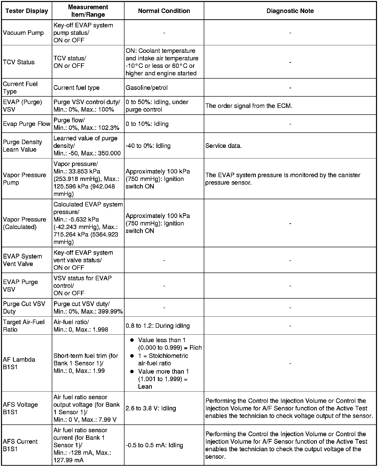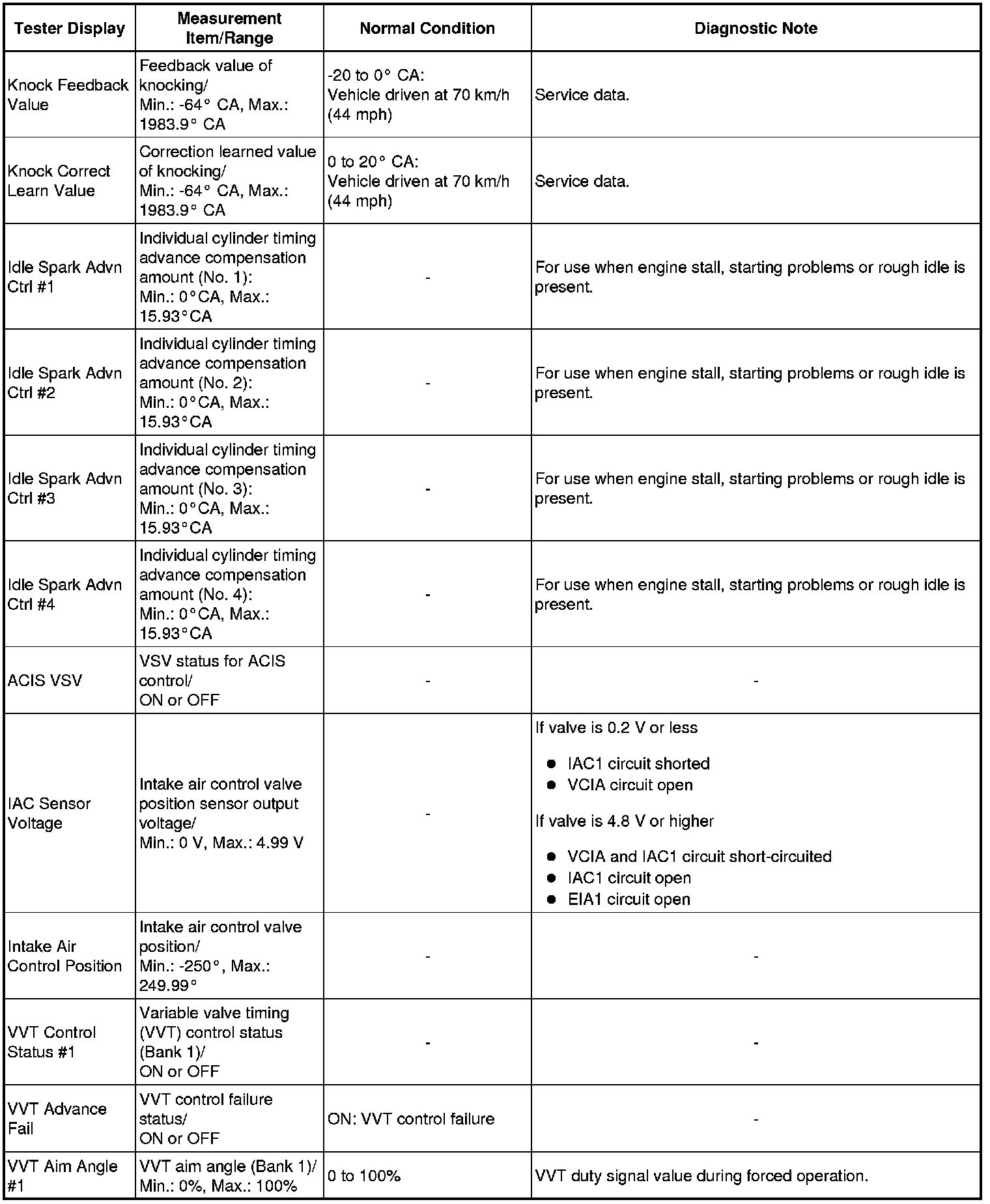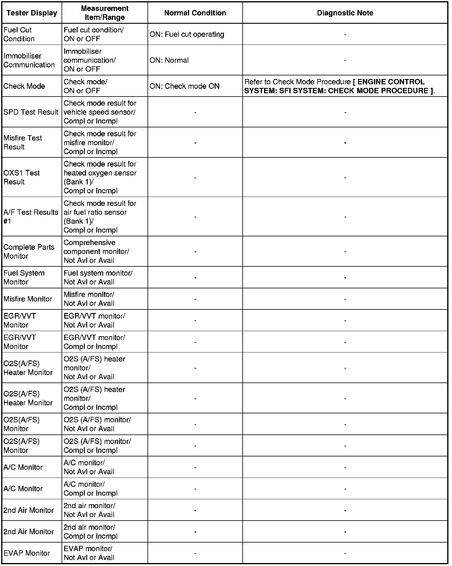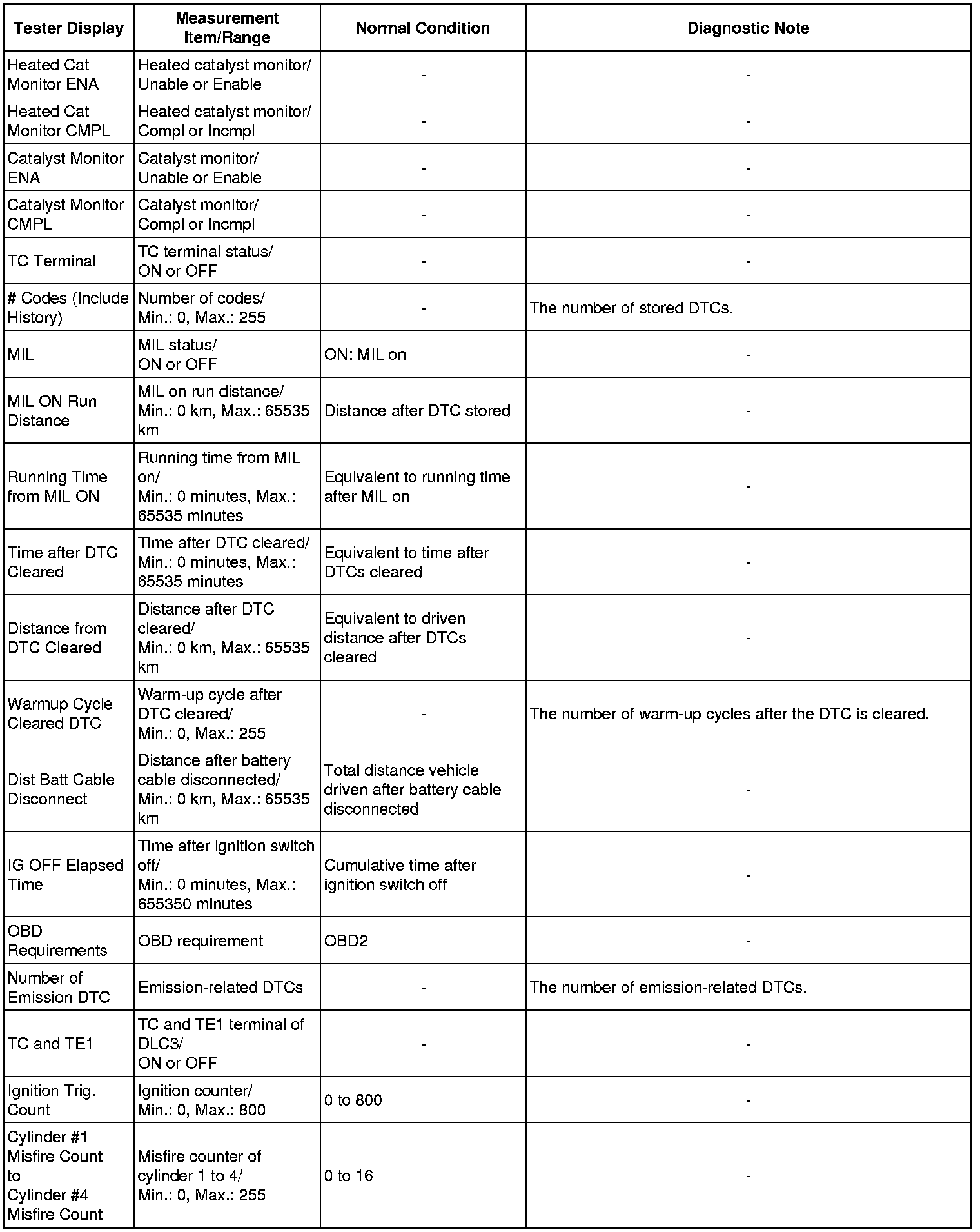 Using the Techstream to read the Data List allows the values or states of switches, sensors, actuators and other items to be read without removing any parts. This non-intrusive inspection can be very useful because intermittent conditions or signals may be discovered before parts or wiring is disturbed. Reading the Data List information early in troubleshooting is one way to save diagnostic time.