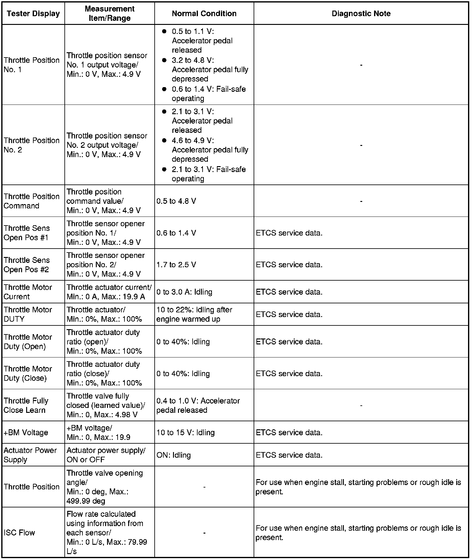 * *: Excluding throttle valve opening percentage due to Idle Speed Control (ISC).