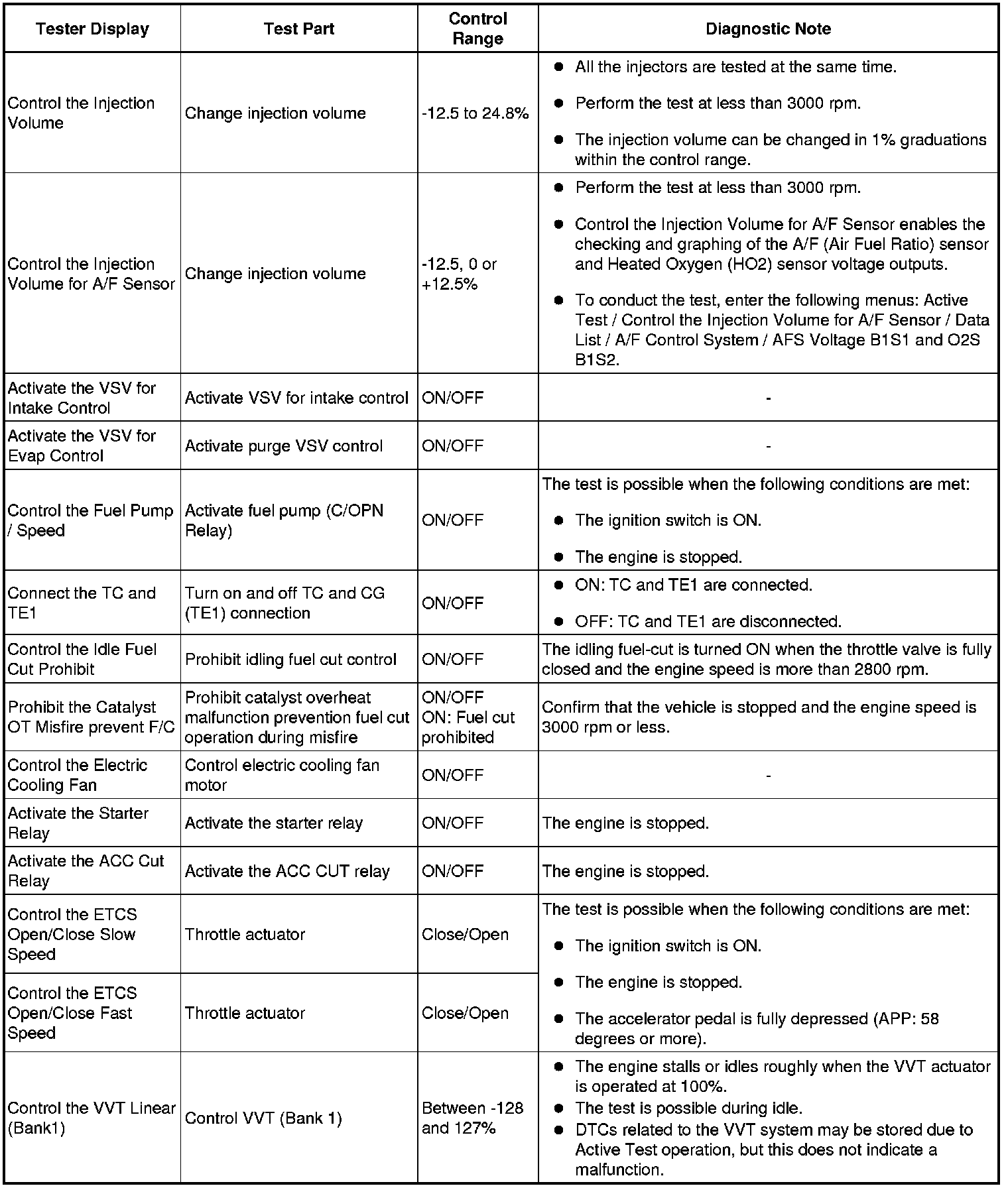 2AR-FE ENGINE CONTROL SYSTEM: SFI SYSTEM: DATA LIST / ACTIVE TEST