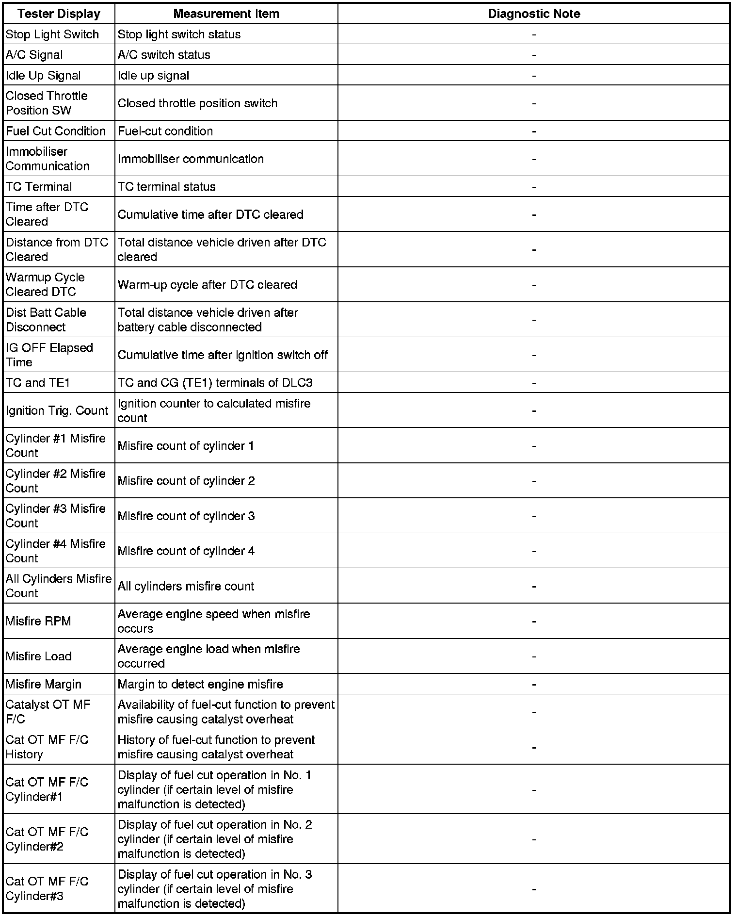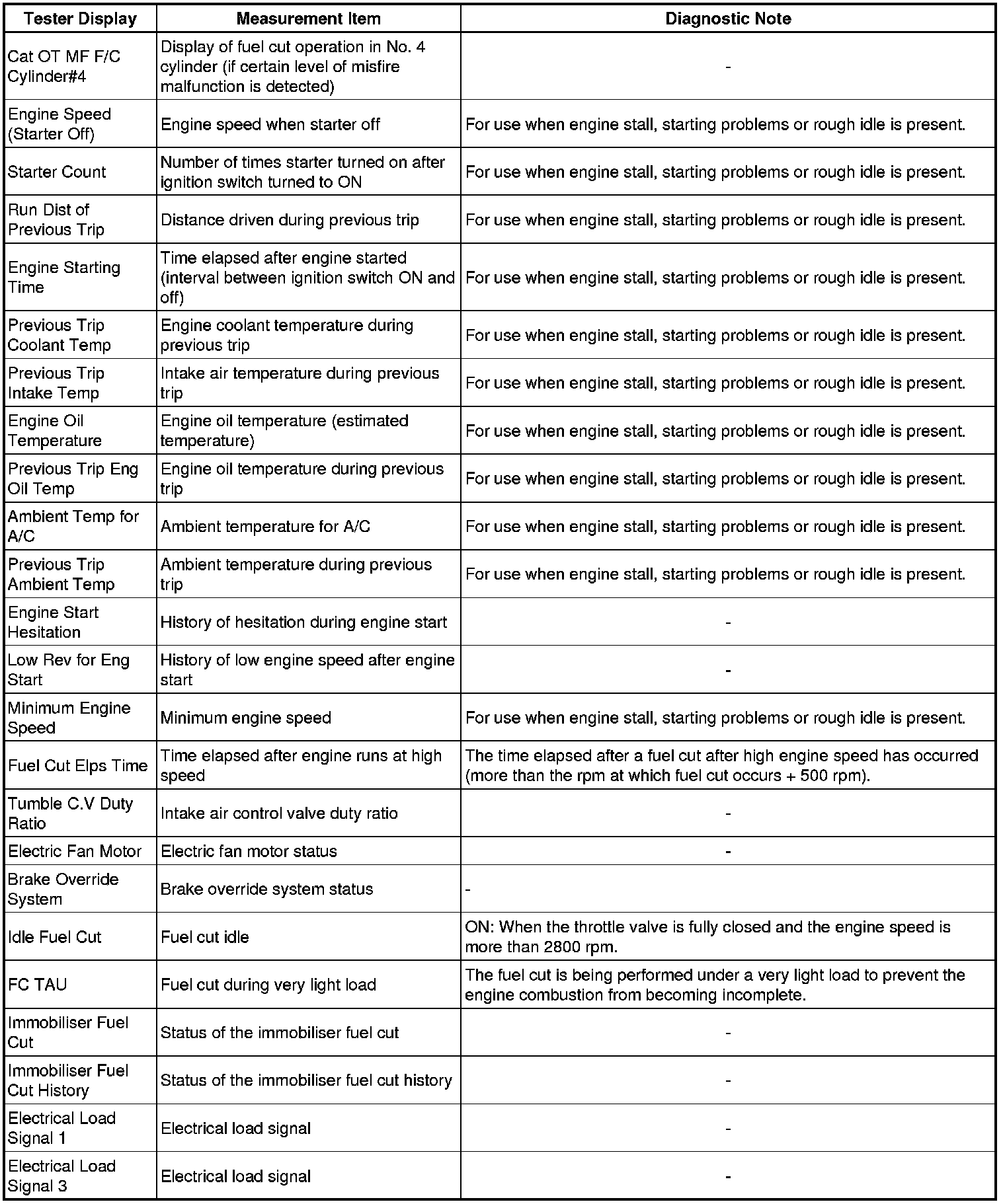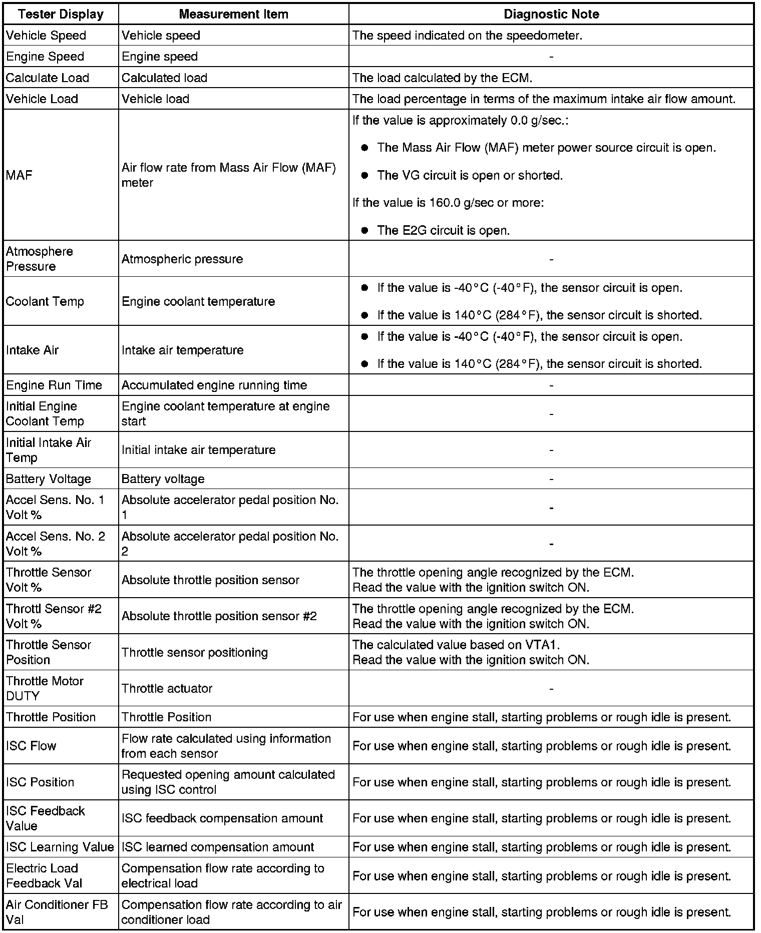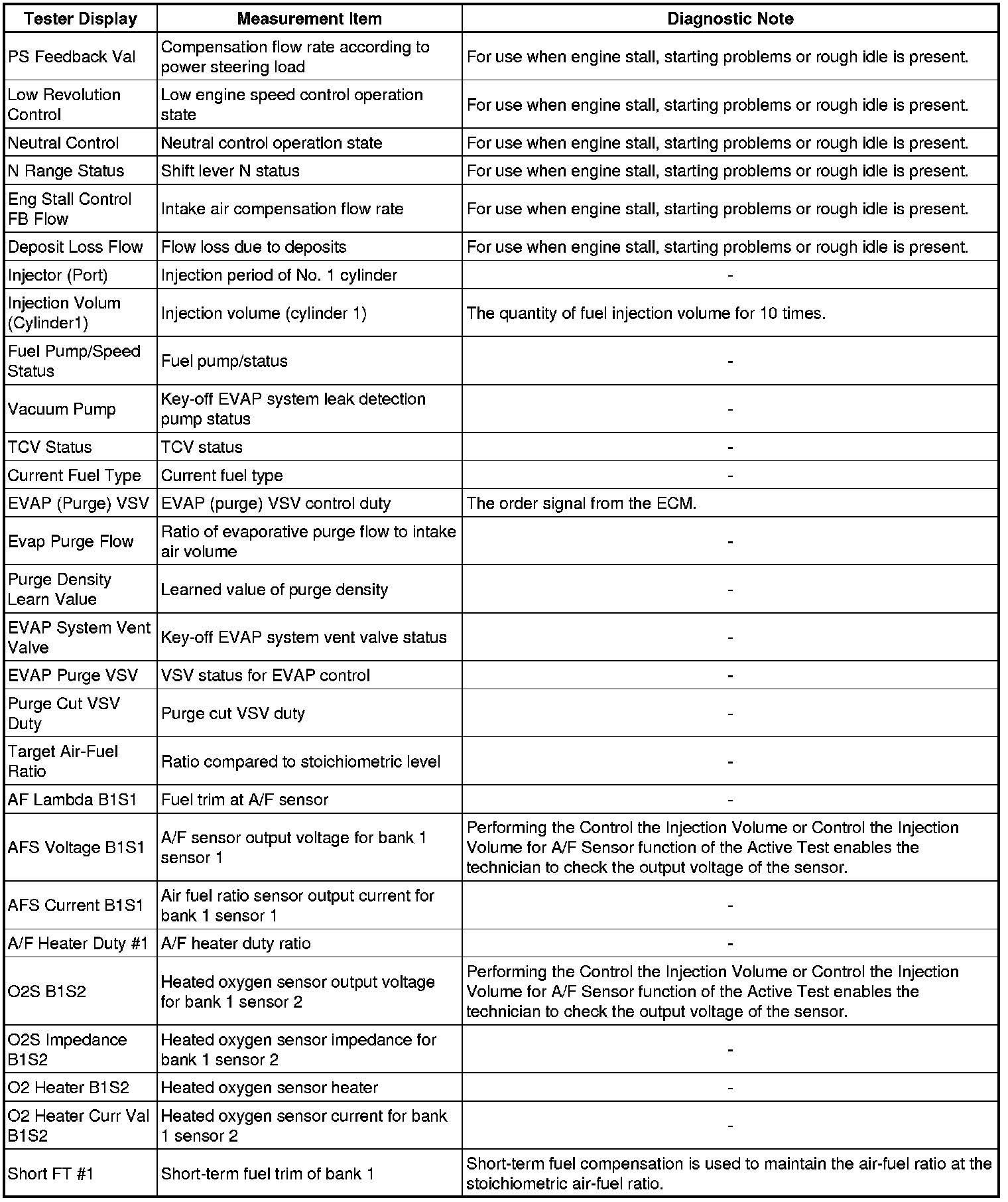 * The ECM records vehicle and driving condition information as freeze frame data the moment a DTC is stored. When troubleshooting, freeze frame data can be helpful in determining whether the vehicle was moving or stationary, whether the engine was warmed up or not, whether the air-fuel ratio was lean or rich, as well as other data recorded at the time of a malfunction.