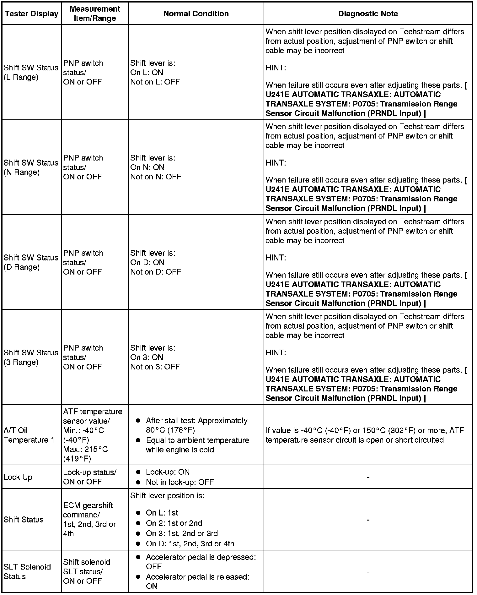 U241E AUTOMATIC TRANSAXLE: AUTOMATIC TRANSAXLE SYSTEM: DATA LIST / ACTIVE TEST