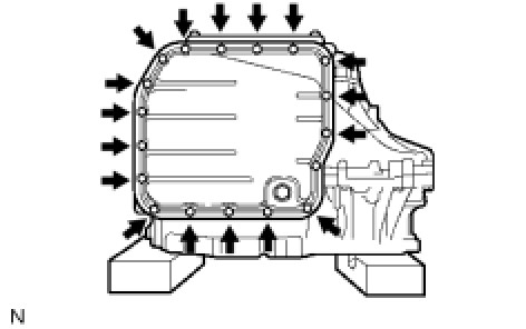 Install the oil pan to the transaxle with the 18 bolts.