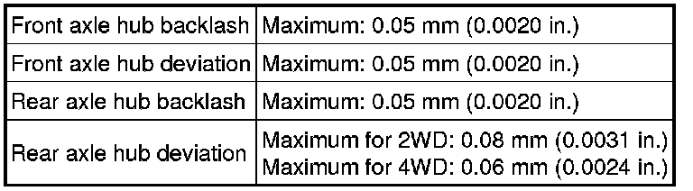 SERVICE SPECIFICATIONS: AXLE: SERVICE DATA