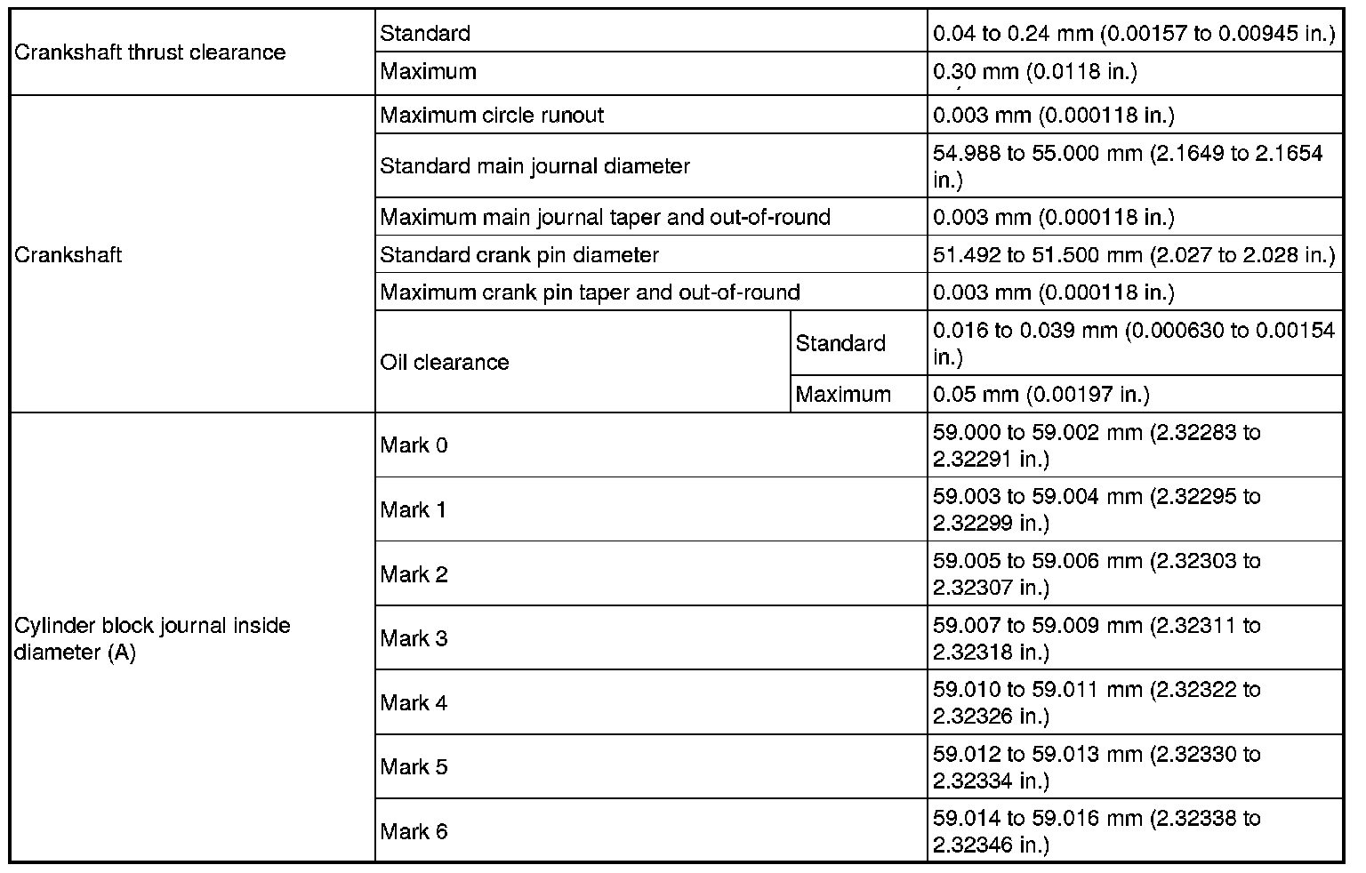 MAIN BEARING CLEARANCE, STANDARD & LIMIT