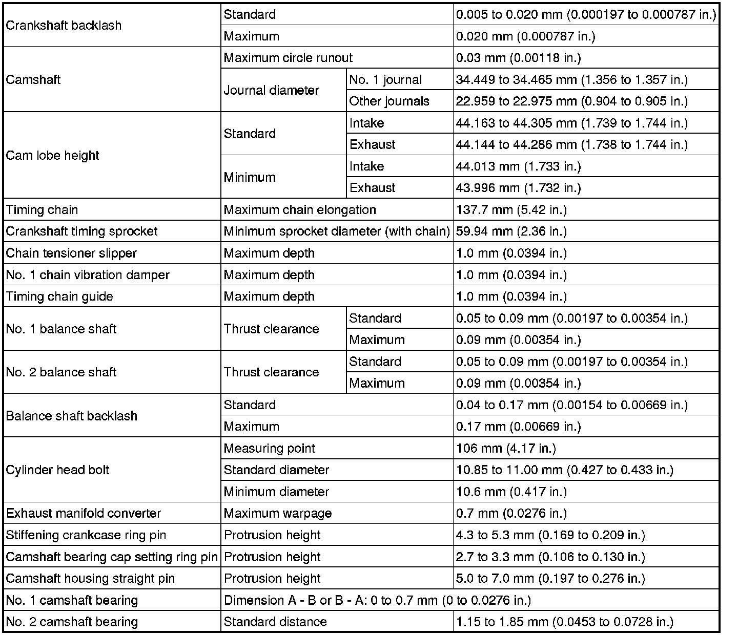 SERVICE SPECIFICATIONS: 2AR-FE ENGINE MECHANICAL: SERVICE DATA
