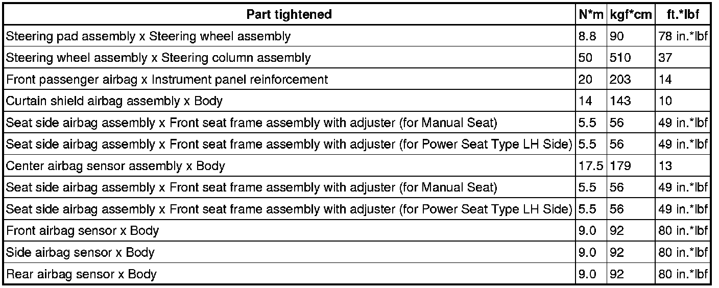 SERVICE SPECIFICATIONS: SUPPLEMENTAL RESTRAINT SYSTEM: TORQUE SPECIFICATIONS