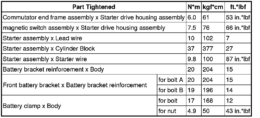 SERVICE SPECIFICATIONS: 2AR-FE STARTING: TORQUE SPECIFICATIONS