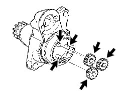 (b) Install the 3 planetary gears to the starter drive housing assembly.