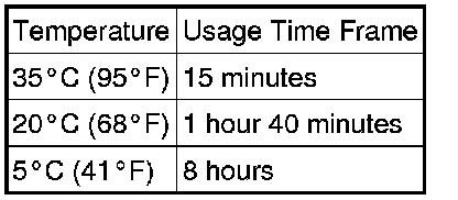After cutting off the tip, use all adhesive within the time written in the table below.