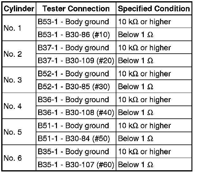 3. CHECK HARNESS AND CONNECTOR (FUEL INJECTOR ASSEMBLY - ECM)