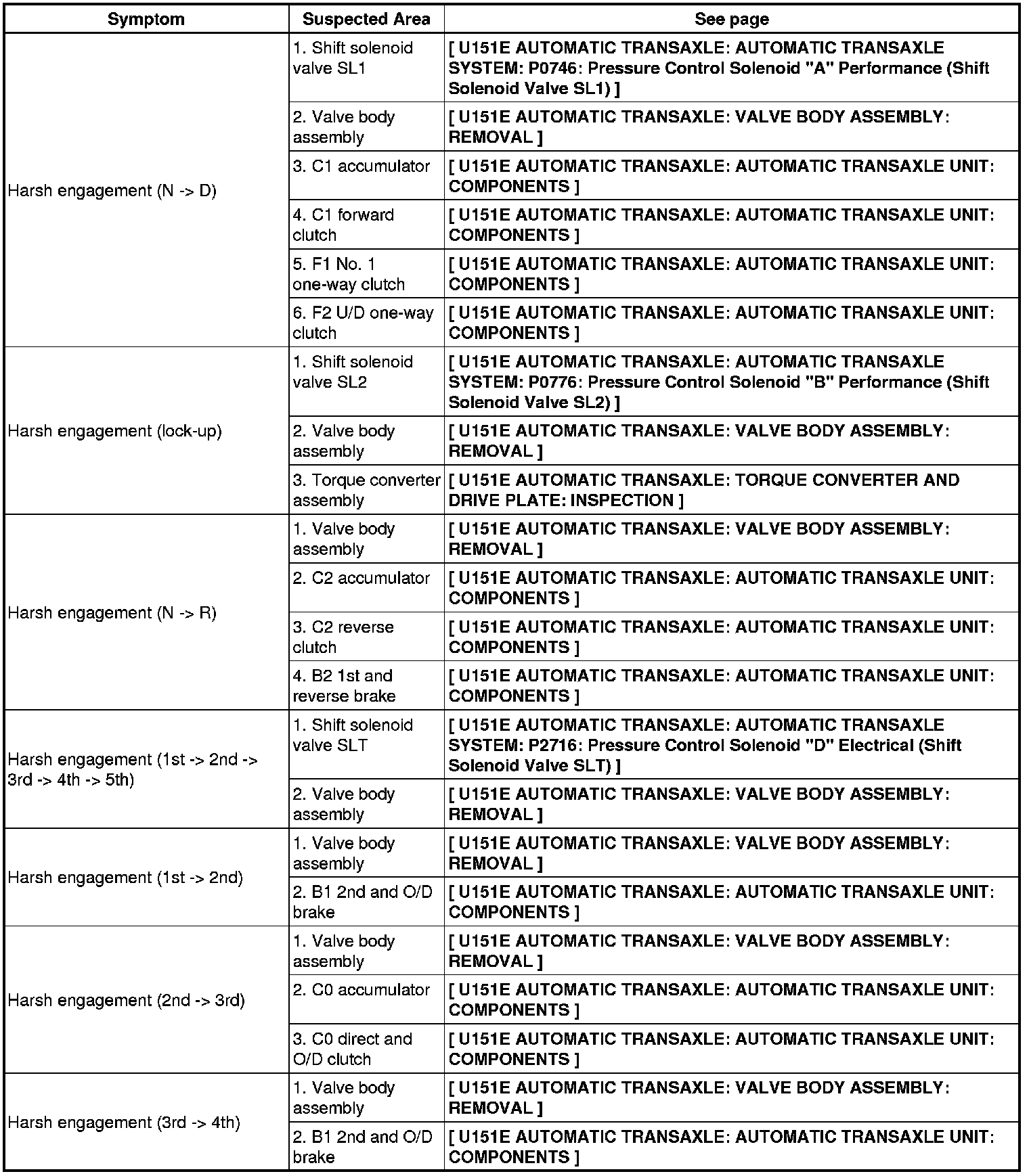 U151E AUTOMATIC TRANSAXLE: AUTOMATIC TRANSAXLE SYSTEM: PROBLEM SYMPTOMS TABLE