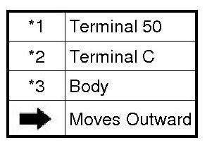 (1) Disconnect the negative (-) terminal lead from terminal C with the condition specified in the pull-in test above being maintained. Check that the pinion gear remains out.