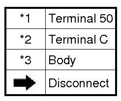 (2) Connect the battery and an ammeter to the starter as shown in the illustration.