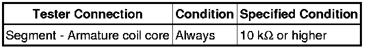 If the result is not as specified, replace the starter armature assembly.
