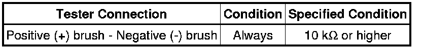 If the result is not as specified, replace the starter commutator end frame assembly.