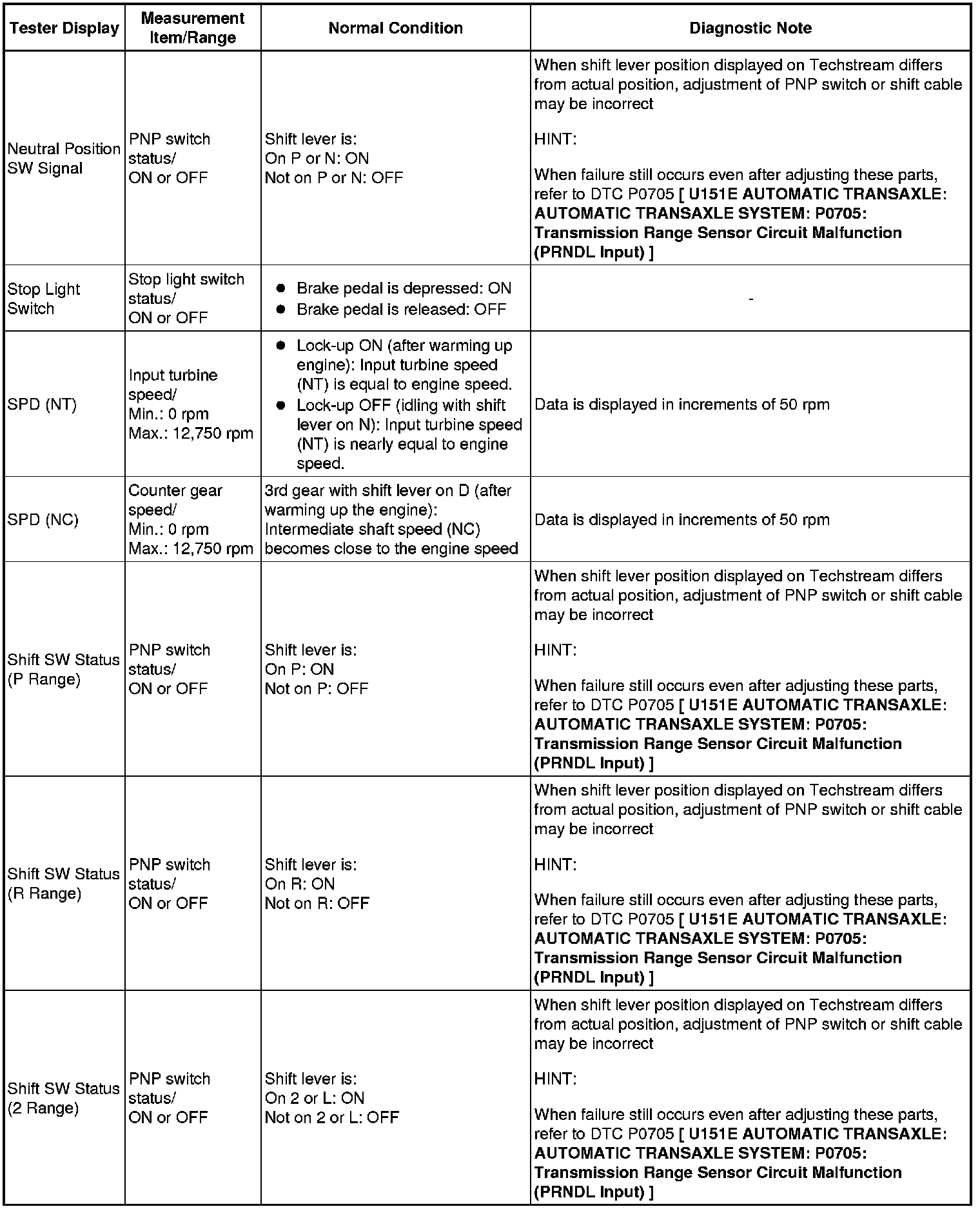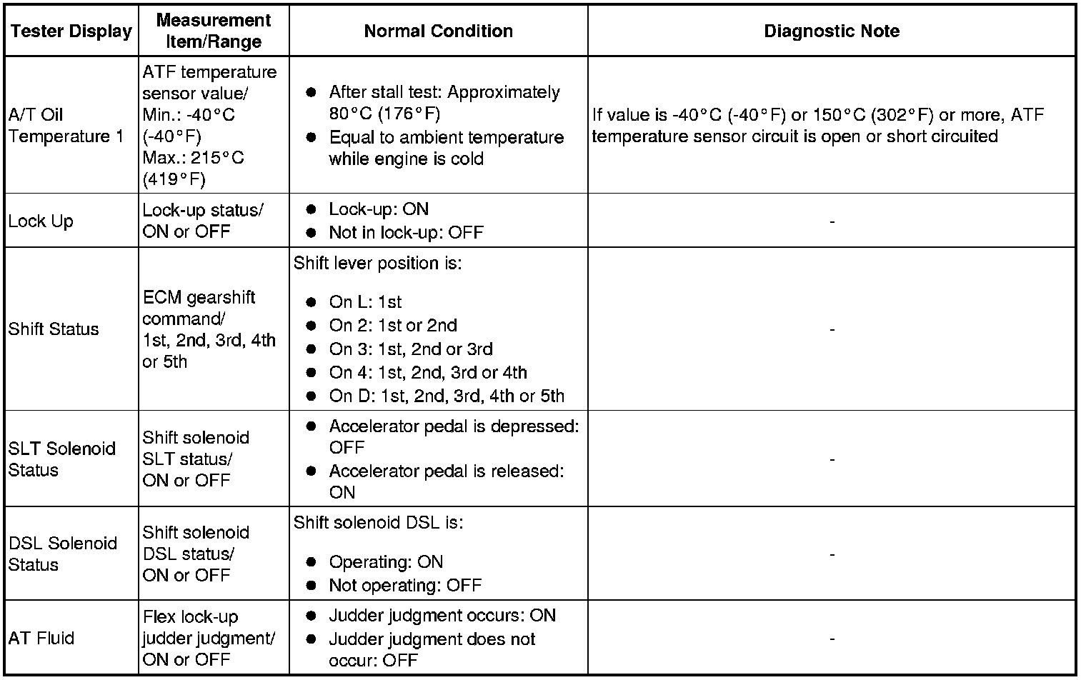 U151E AUTOMATIC TRANSAXLE: AUTOMATIC TRANSAXLE SYSTEM: DATA LIST / ACTIVE TEST