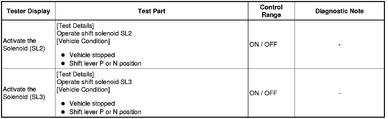*: "Activate the Solenoid (SLT)" in the Active Test is performed to check the line pressure changes by connecting SST to the automatic transaxle, which is used in the HYDRAULIC TEST Hydraulic Test as well. Please note that the pressure values in the Active Test and HYDRAULIC TEST are different.