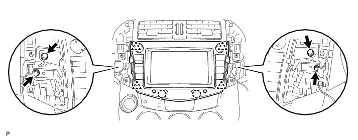 (1) Install the No. 2 radio bracket to the navigation receiver with the 4 screws.