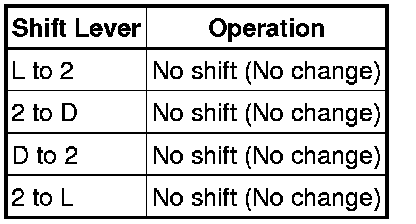 (e) Check the transaxle operation when the shift lever is moved into the L, 2 and D positions.