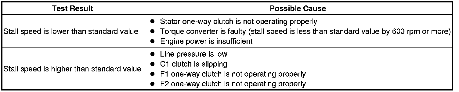 This test is to check the condition of the direct clutch, forward clutch, 1st brake and reverse brake.