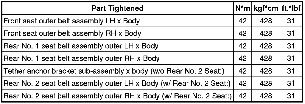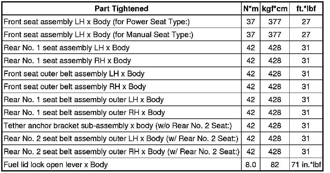 SERVICE SPECIFICATIONS: INTERIOR: TORQUE SPECIFICATIONS