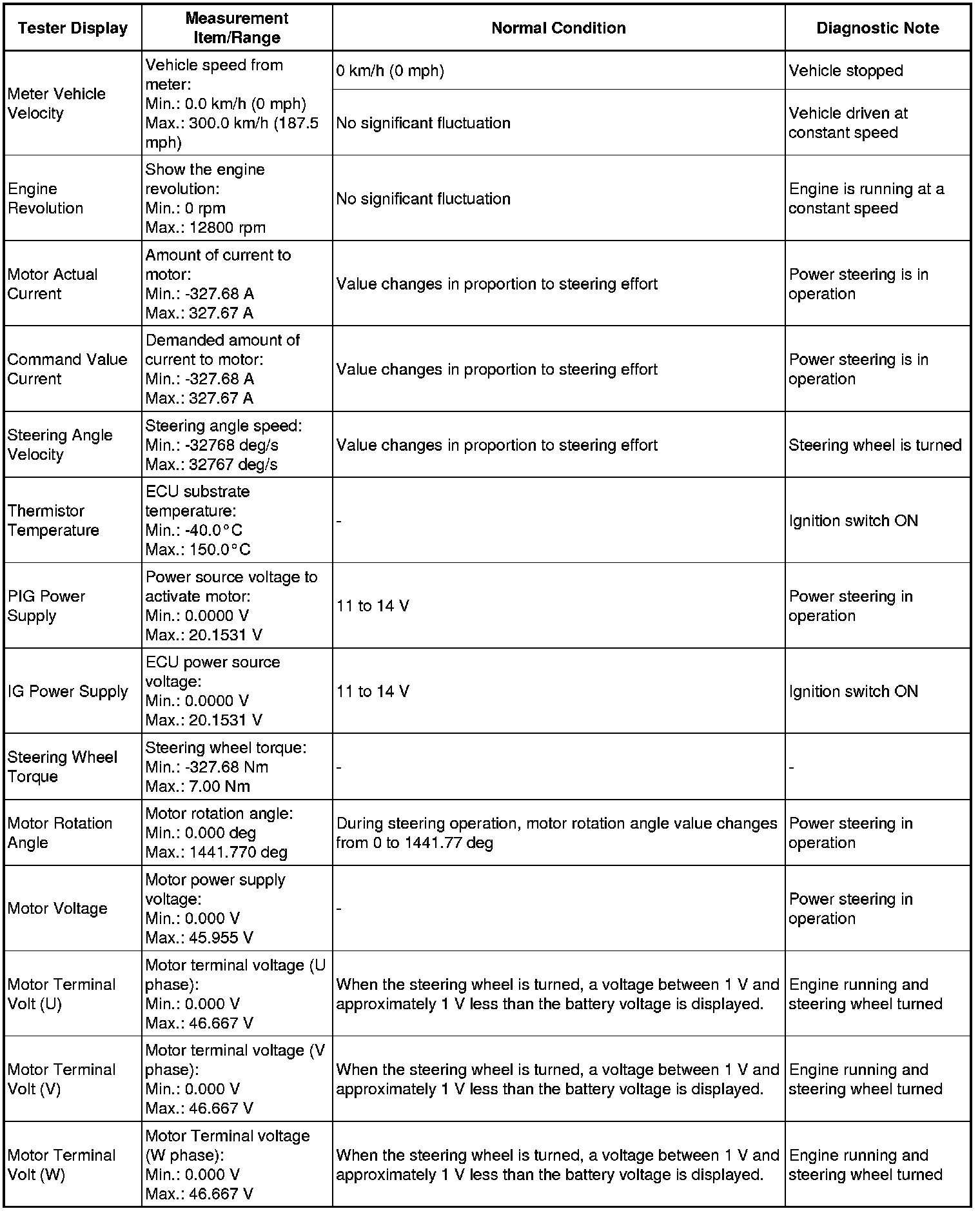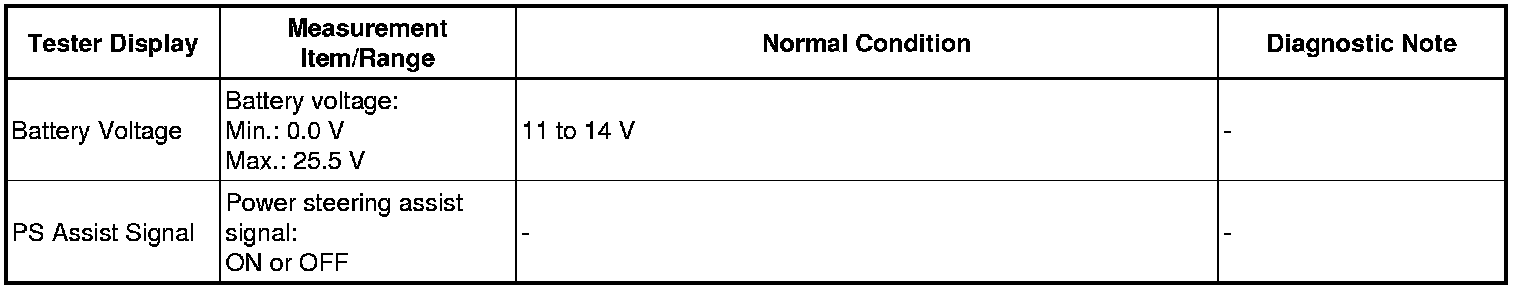 POWER STEERING: POWER STEERING SYSTEM: FREEZE FRAME DATA