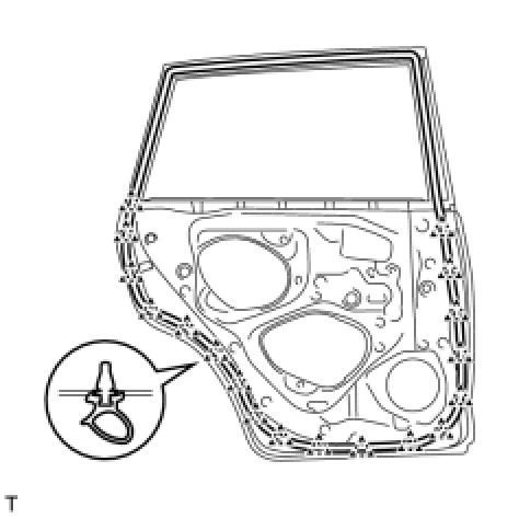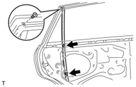 It is not necessary to fully remove the rear door weatherstrip. Install the screw on the inner side of the rear door weatherstrip.