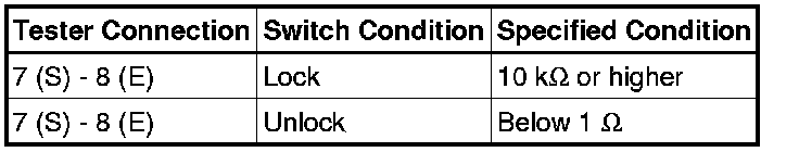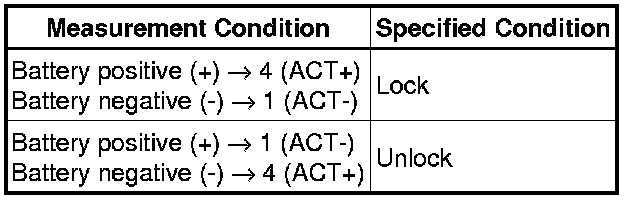 * If the result is not as specified, replace the door lock assembly.