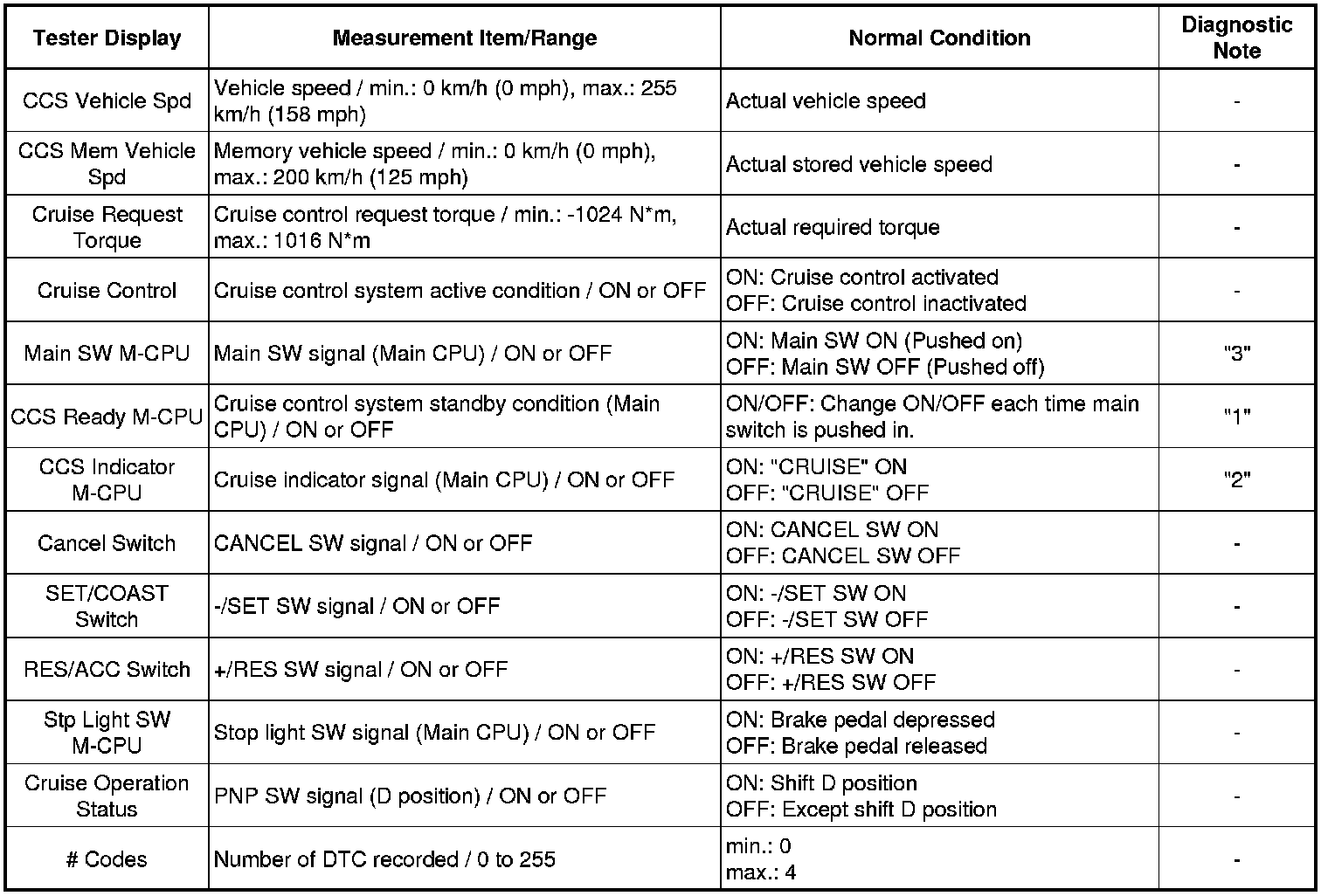 CRUISE CONTROL: CRUISE CONTROL SYSTEM: DATA LIST / ACTIVE TEST