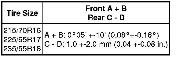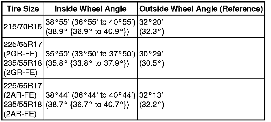 * If the angles are not as specified, check and adjust the right and left rack end lengths.