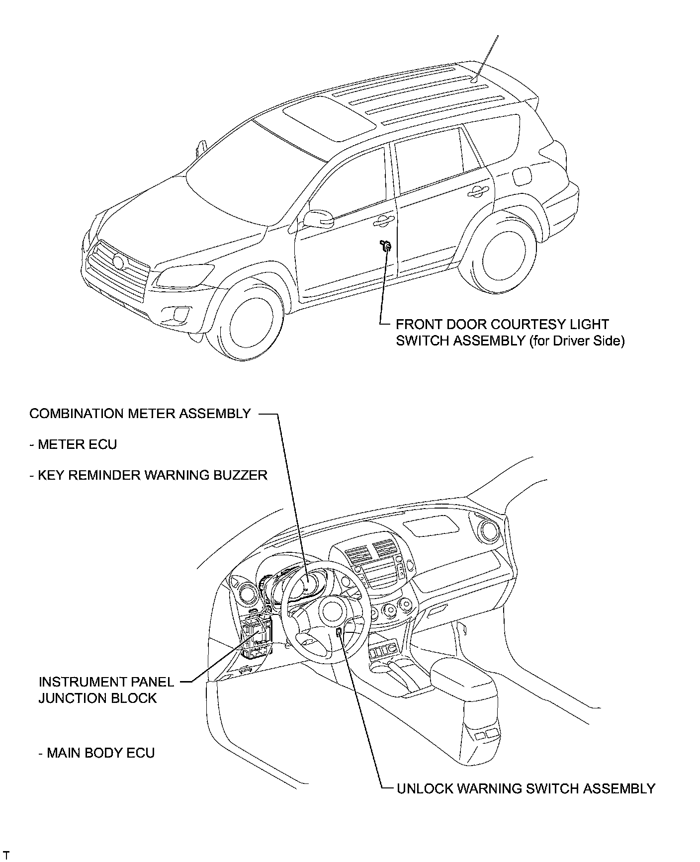 DOOR LOCK: KEY REMINDER WARNING SYSTEM: PARTS LOCATION