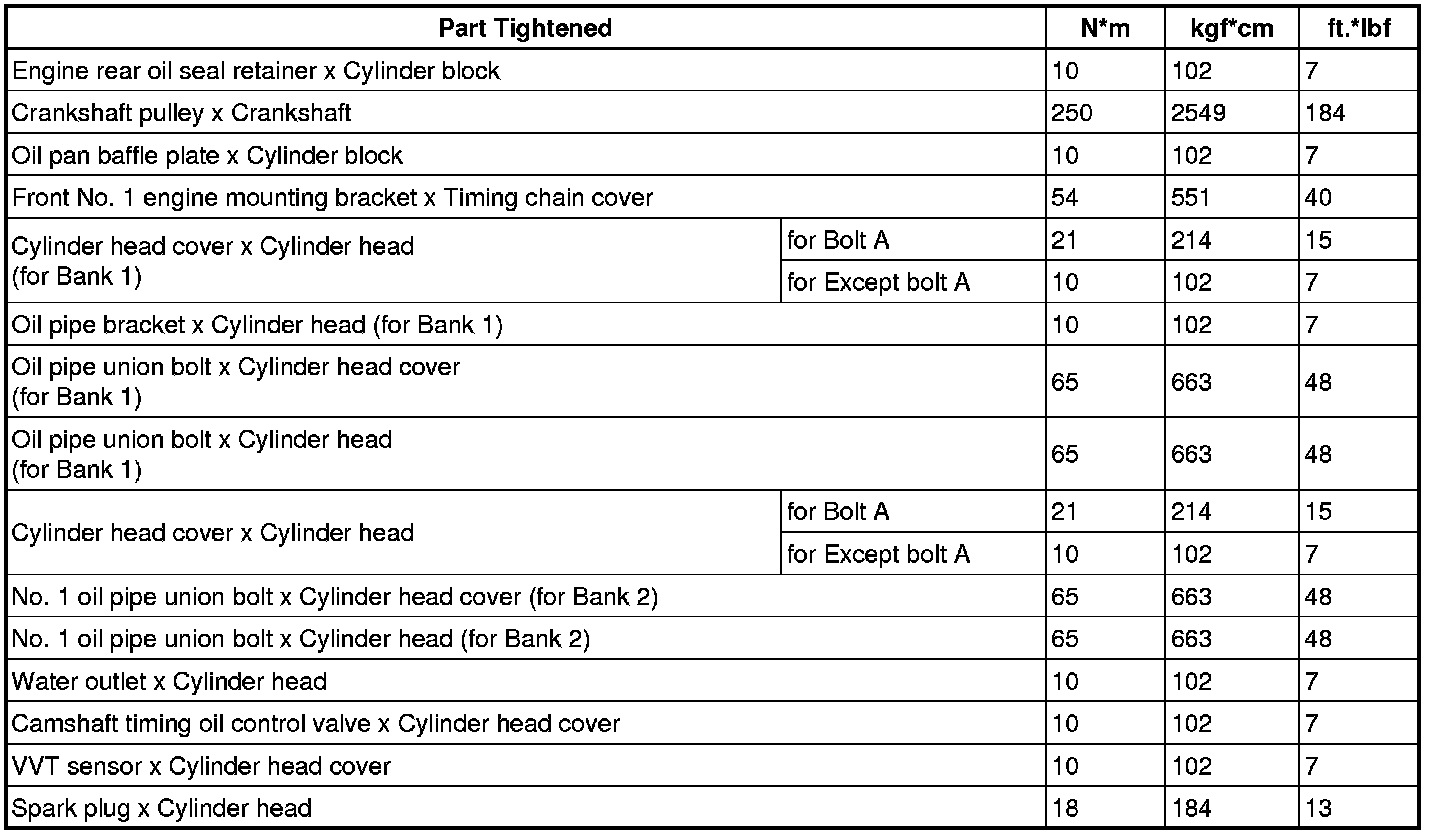 SERVICE SPECIFICATIONS: 2GR-FE ENGINE MECHANICAL: TORQUE SPECIFICATIONS
