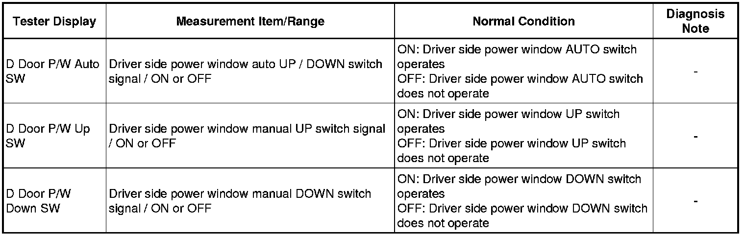 WINDSHIELD / WINDOWGLASS: POWER WINDOW CONTROL SYSTEM: DATA LIST / ACTIVE TEST