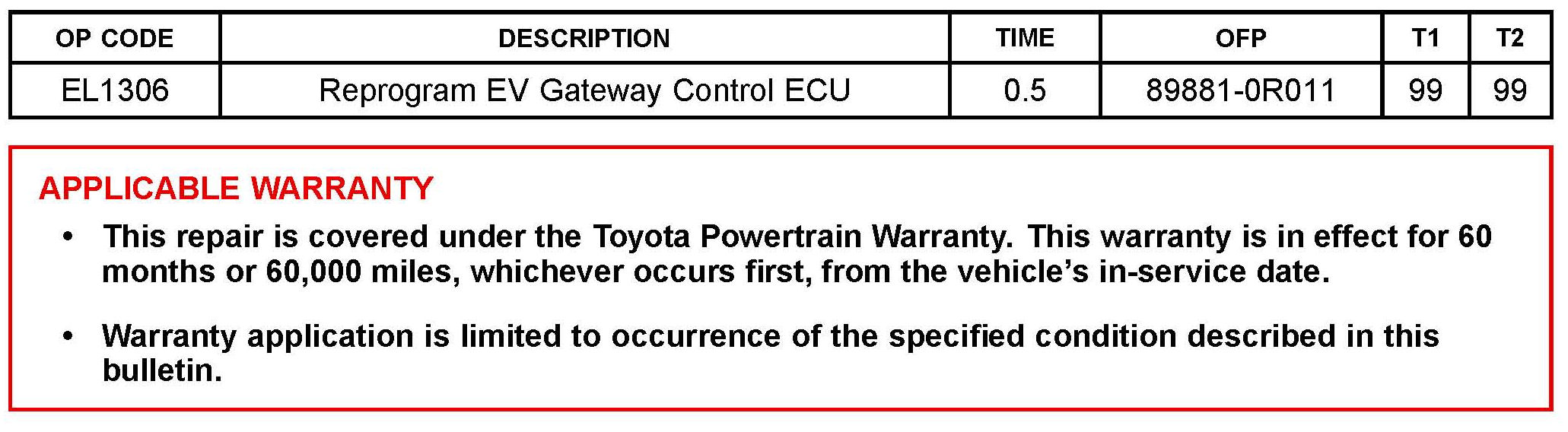 Follow the procedures outlined in Service Bulletin No.T-SB-0043013, "RAV4 EV ECU Flash Reprogramming Procedure", and flash reprogram the ECU with the NEW calibration file update.