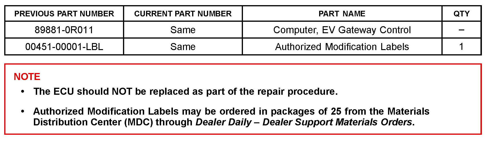 The EV Gateway Control ECU logic has been updated to improve vehicle operation and charging timer operation. Use the following procedure to reprogram the ECU.