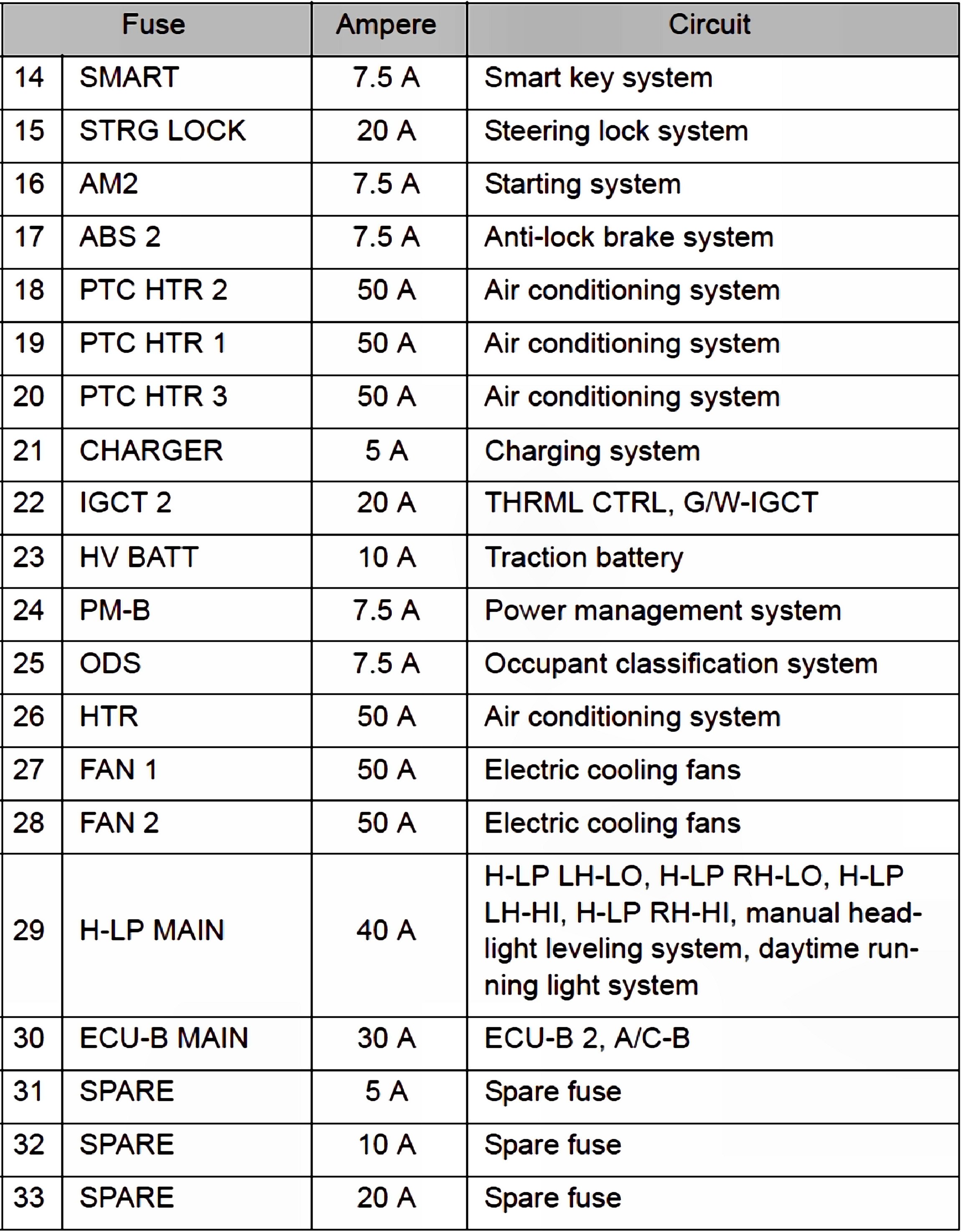 Front Side Of Fuse Block: