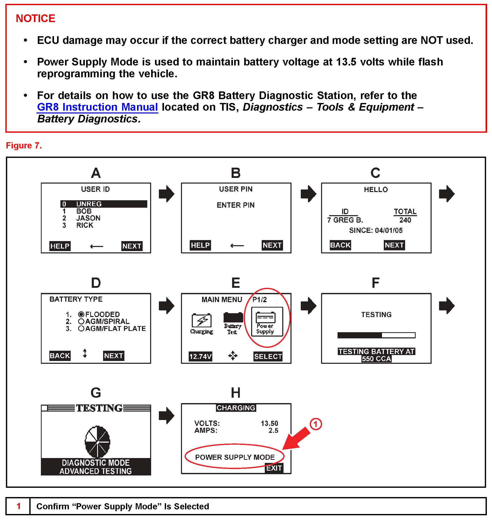 The GR8 Battery Diagnostic Station includes a Power Supply Mode to help maintain battery voltage at 13.5 volts during ECU reprogramming.
