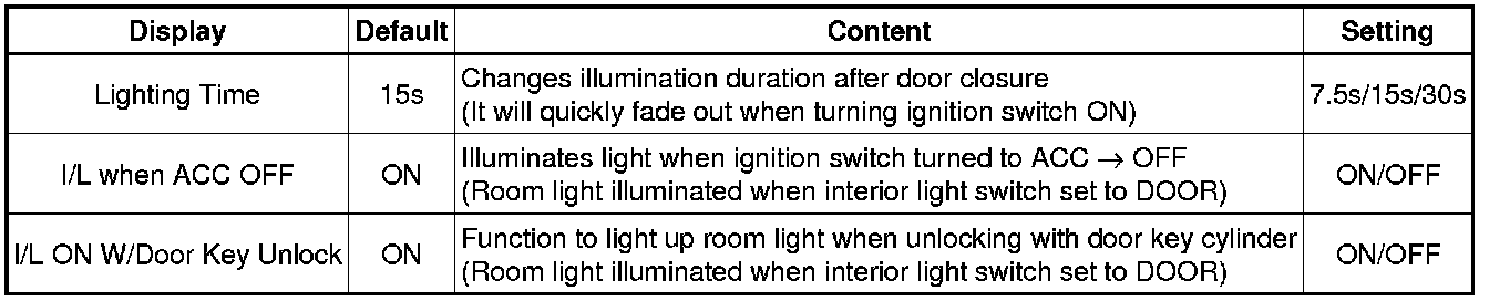(d) Enter the following menus: Customize Setting / illuminated Entry or Light Control.