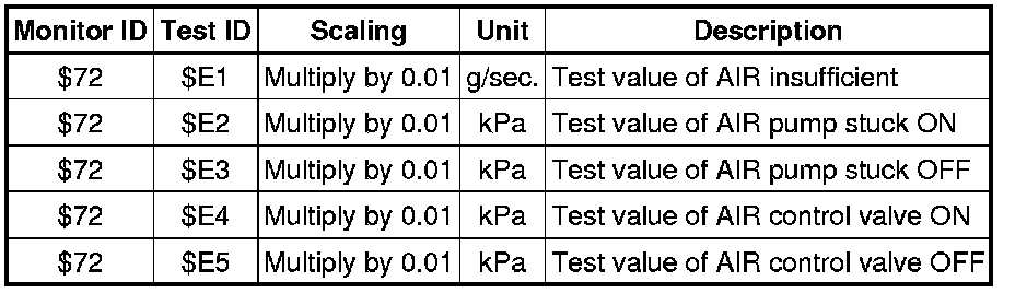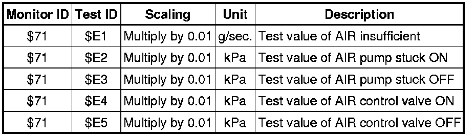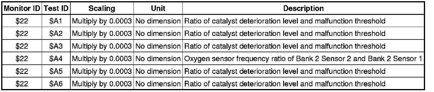 If you use a generic scan tool, multiply the test value by the scaling value listed below.