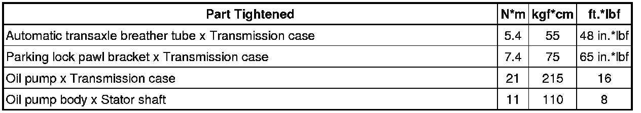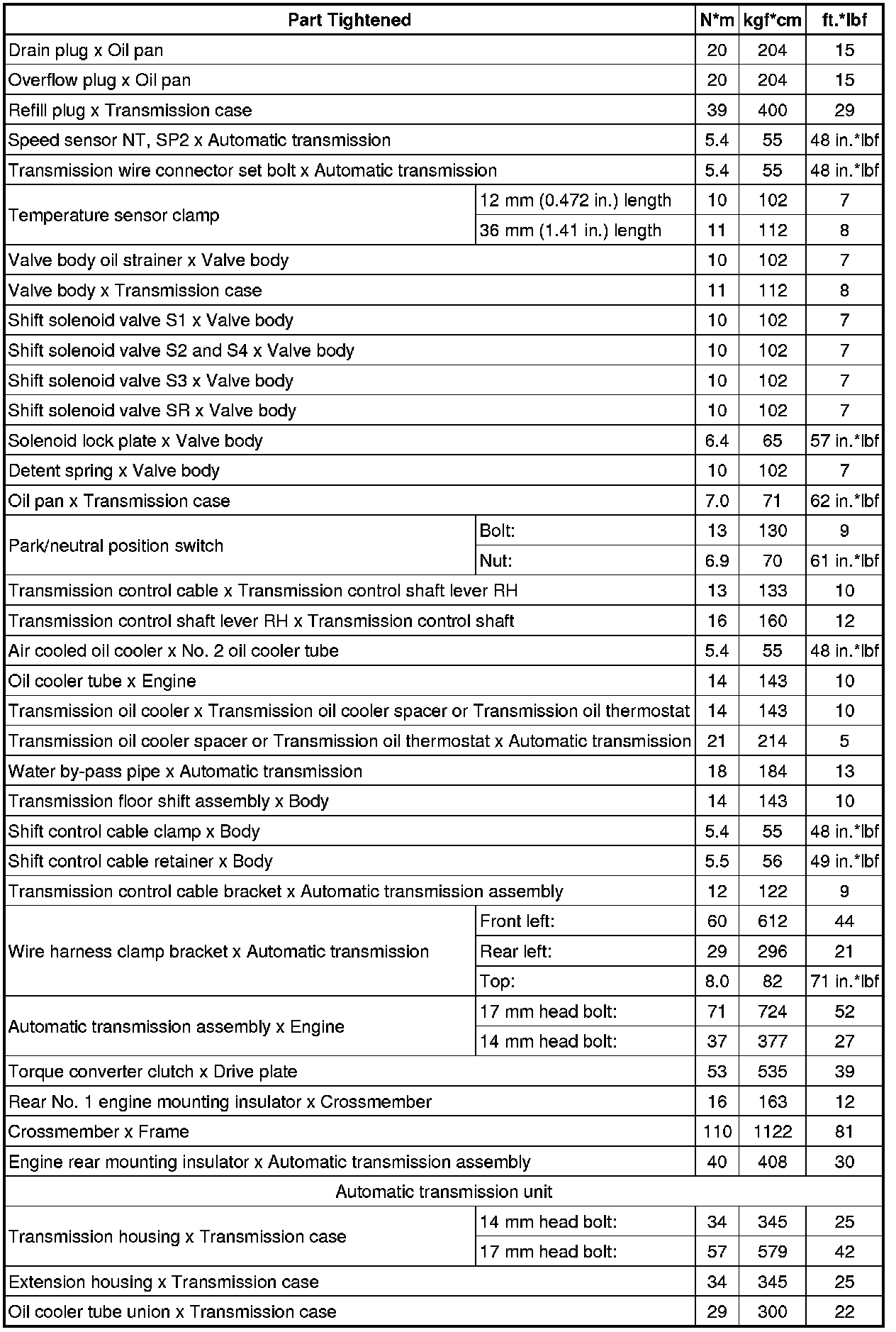 SPECIFICATIONS: A760E AUTOMATIC TRANSMISSION / TRANSAXLE: TORQUE SPECIFICATIONS