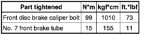 SPECIFICATIONS: BRAKE (FRONT): TORQUE SPECIFICATIONS